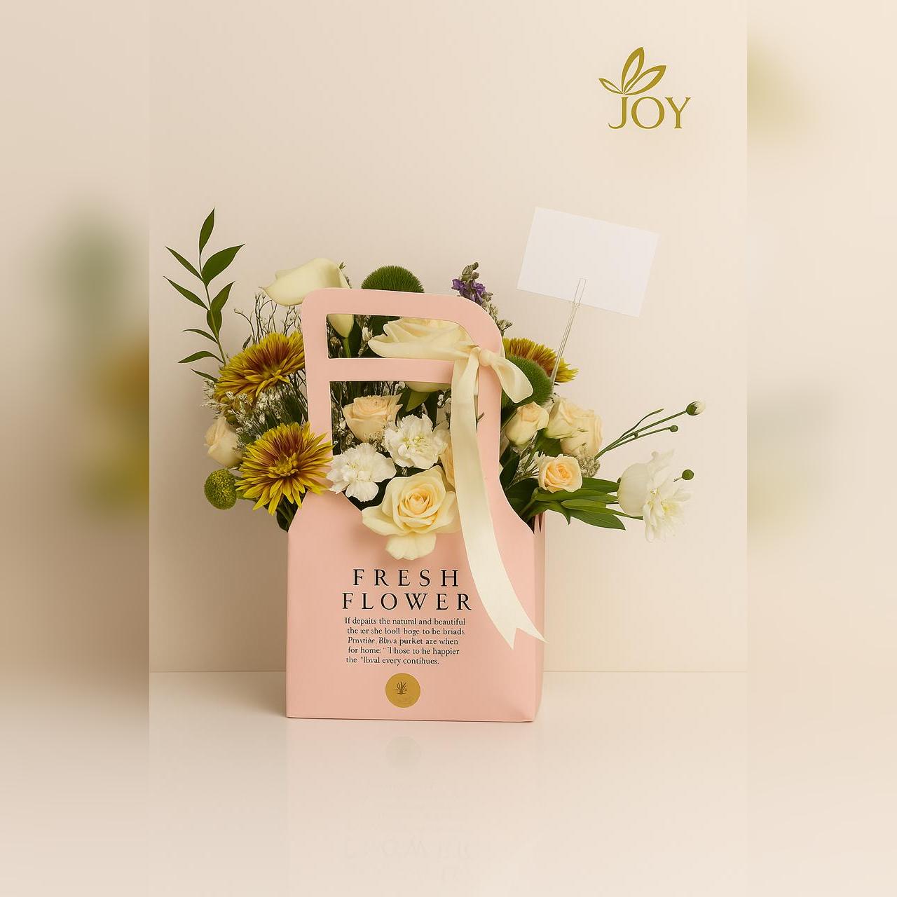 : Elegant Touch : An elegant box featuring a refined blend of pink and white flowers, accented with fresh greenery for a soft and sophisticated look. Its delicate design makes it a perfect choice for luxury gifting and special occasions . Flowers used : Pink Anthurium – Pink Peony – Green Chrysanthemum – White Alstroemeria – Eucalyptus – Pink Carnation